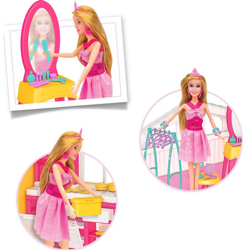 Къща на мечтите на линда за размер кукли тип барби с кукла и обзавеждане 3 етажа 60x50x16