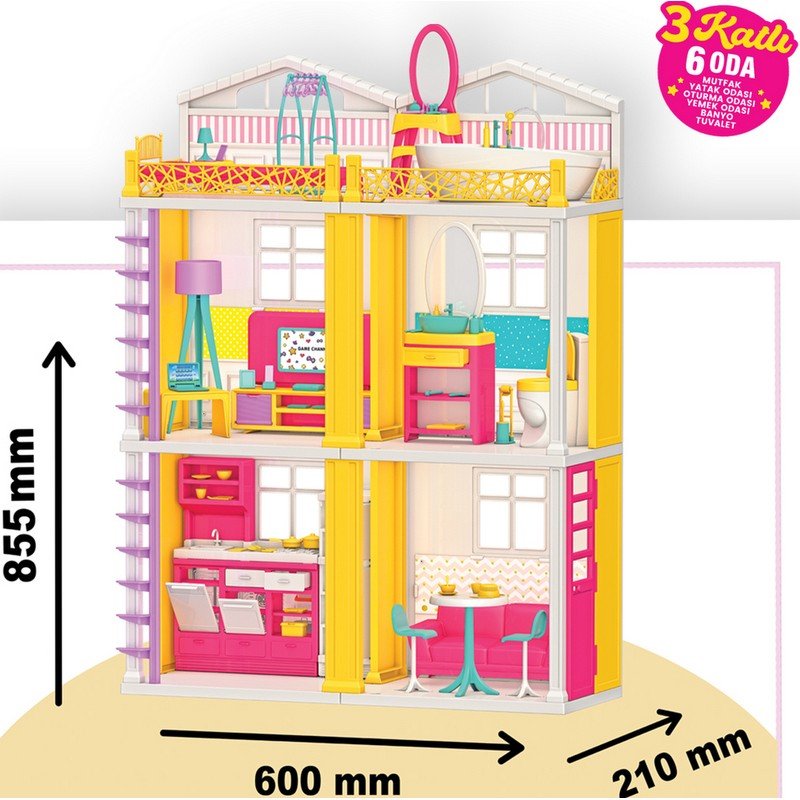 Подарете на детето си незабравими моменти с невероятната Къща на мечтите на Линда – модерна и просторна 3-етажна къща за кукли тип Барби. С височина 60 см, ширина 50 см и дълбочина 16 см, тази къща предлага перфектното пространство за игра и въображение.