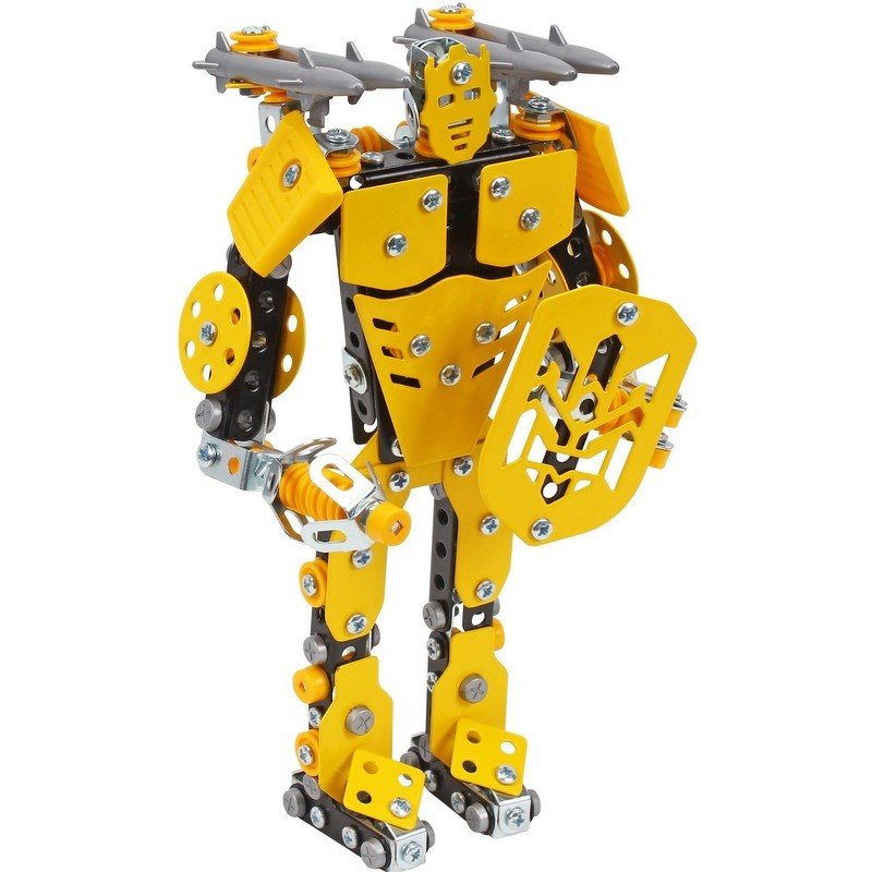 Този висококачествен метален конструктор е идеален за малки и големи любители на техниката. Съдържа цели 570 части, включително метални елементи, болтове, гайки и специални инструменти, които позволяват сглобяване на различни модели – основно робот и дрон, както и други механични конструкции според въображението на детето.