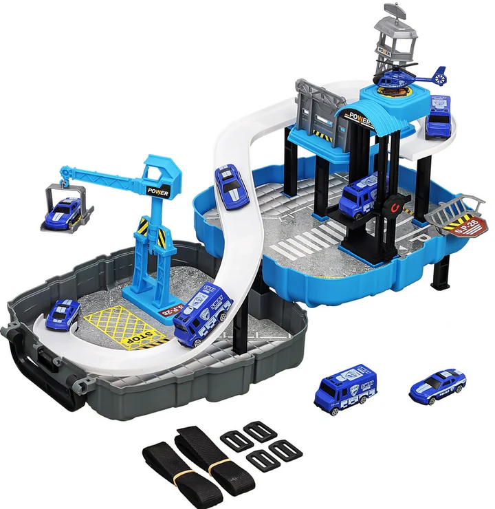 Комплектът включва ранец с дръжка, съдържащ сглобяема полицейска станция с различни аксесоари. Тази играчка е предназначена за деца, които обичат ролеви и стратегически игри, като им позволява да разиграват сценарии с полицаи, патрулни коли и задържане на „престъпници“.