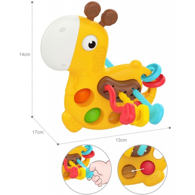 Подарете на вашето бебе първите му вълнуващи открития с нашата бебешка сензорна дрънкалка с размер 19×17×5 см – създадена да стимулира сетивата, фината моторика и естественото любопитство още от най-ранна възраст.