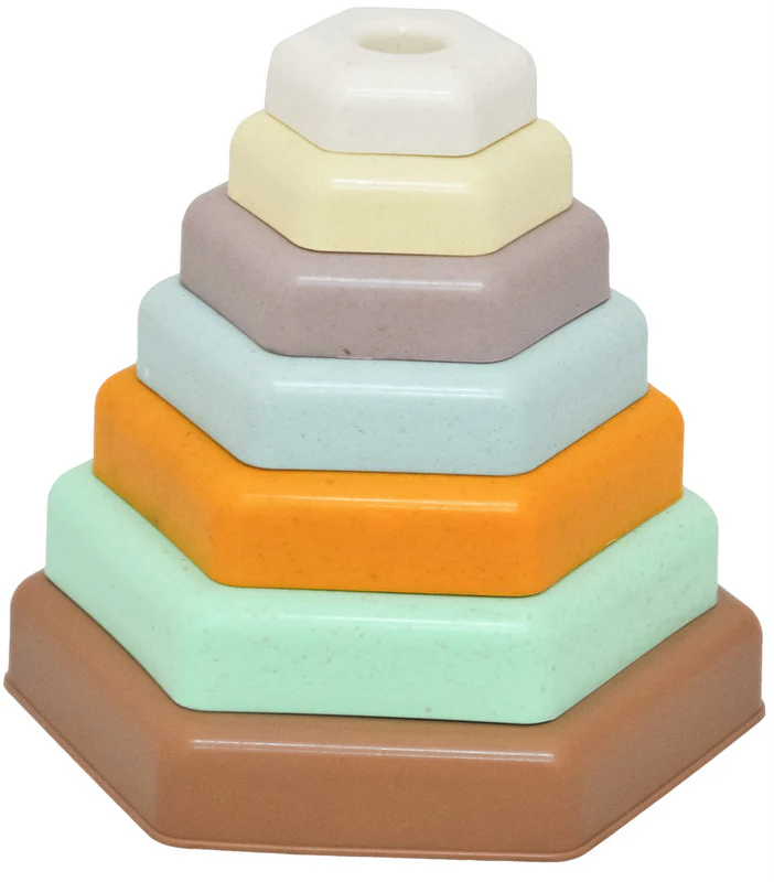 Комплектът включва еко пирамида, предназначена за най-малките деца. Играчката е изработена от екологично чисти и безопасни материали, които са подходящи за игра и развитие на умения още от ранна възраст.