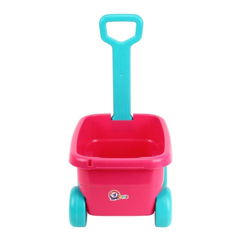 Практична и здрава детска количка с дълга дръжка, подходяща за игра, съхранение и пренасяне на играчки.