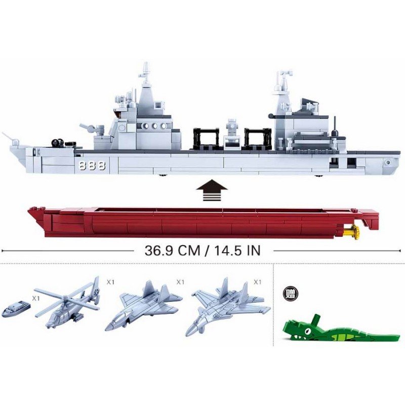 Конструктор Sluban Армия Продоволствен кораб точен модел 1:450 мащаб с 2 самолета хеликоптер и лодка 497 ел. 48х33х7