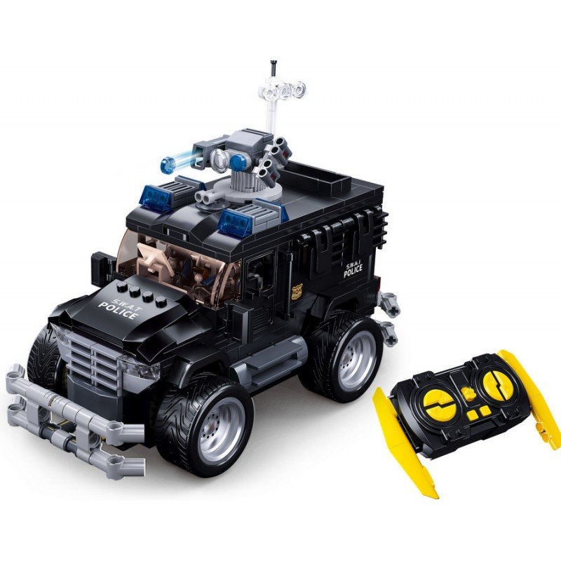 Конструктор Sluban Полиция Брониран Джип с радио контрол 412 ел. с 4 задвижващи колела и 2 фигурки 38х29х10