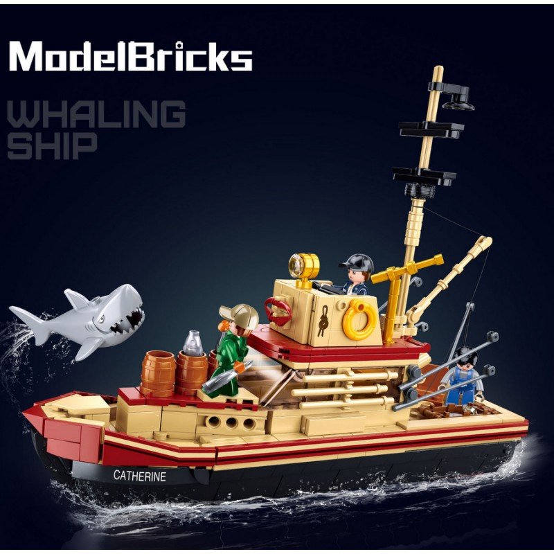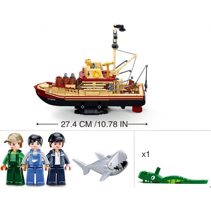 Конструктор Sluban Риболовен Кораб Великата Акула точен модел мащаб 1:35 592 ел. с 4 фигурки 48х33х7