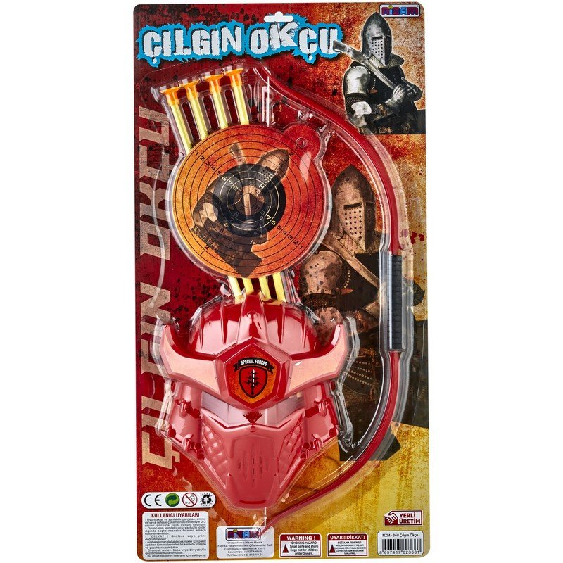Лъкът е лек и удобен за хващане, а стрелите са проектирани за детска игра. Включената защитна маска допринася за по-голяма безопасност по време на игра, а мишената позволява трениране на прицелване и точност както у дома, така и на открито.