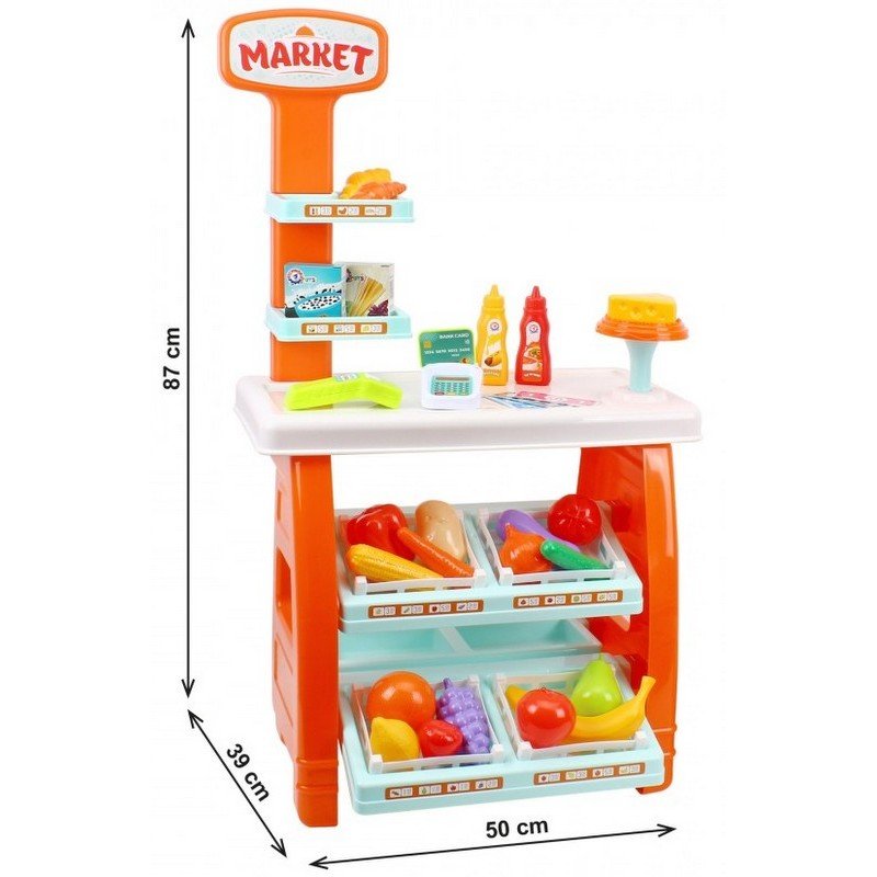 Изработен от безопасни и качествени материали, този детски магазин е стабилен и удобен за игра както у дома, така и в детски кът или градина. Ярките цветове и детайлният дизайн привличат вниманието и задържат интереса на детето за дълго време.