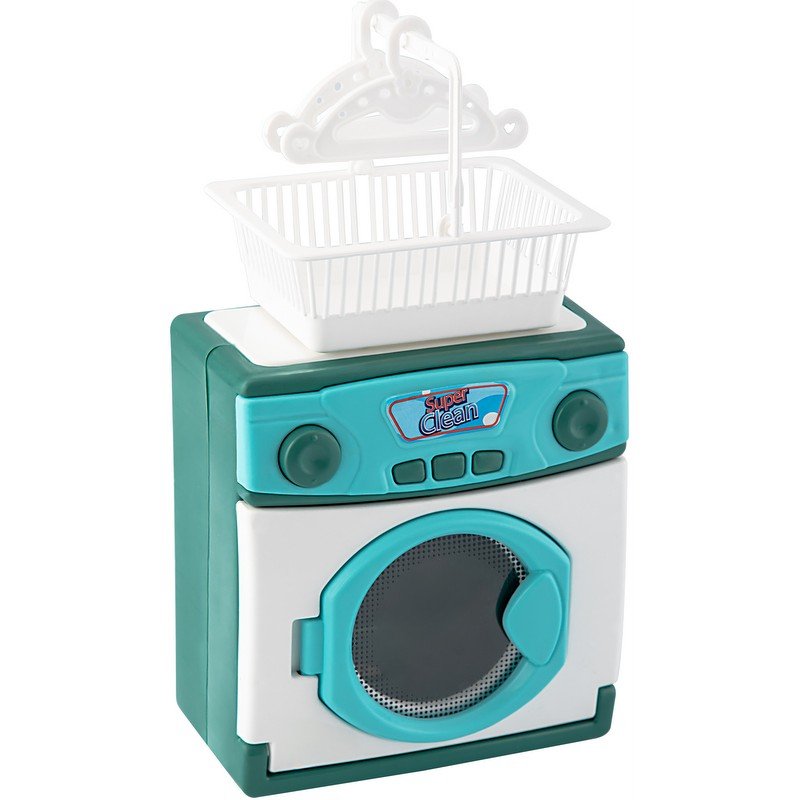 Детската пералня с кошница за пране е забавна играчка, която позволява на децата да участват в ролеви игри, имитирайки домашни задължения. Комплектът развива въображението, фината моторика и организаторските умения на малките.