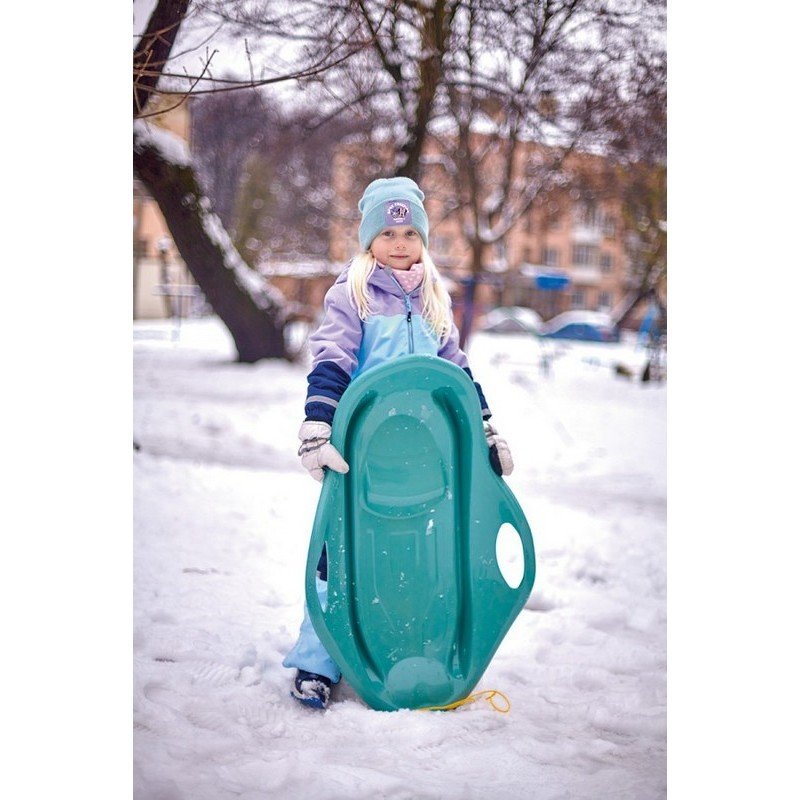 Шейната е оборудвана със здраво въже за теглене, което позволява удобно издърпване по заснежени терени и хълмове. Гладката долна повърхност осигурява добро плъзгане върху сняг, а подсилените ръбове допринасят за по-голяма издръжливост при активна употреба. Материалът е устойчив на ниски температури и механични натоварвания, което гарантира дълъг живот на продукта.