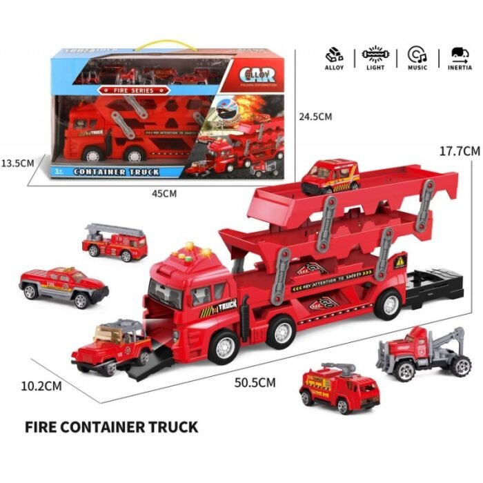 Камион Автовоз с 6 метални пожарни светлина и звук за игра е 51х18х10 в кутия е 45х14х25