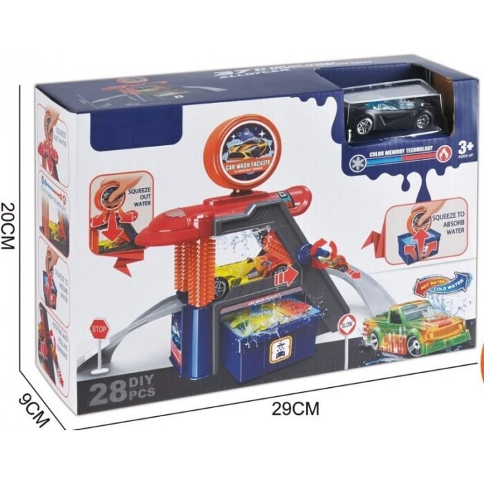 Паркинг Автомивка със сменящи цвета 9 бр. метални колички с топла вода 29х20х9